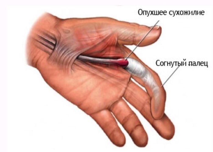 Наиболее опасные последствия болезни Нотта — ограничение подвижности пальца и его деформация, которую можно увидеть на фото. Со временем сустав застывает в одном положении и перестает разгибаться.