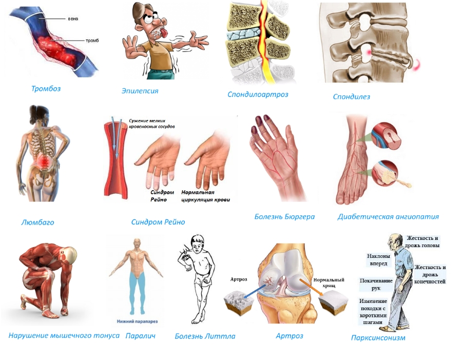 - церебральных и спинномозговых параличах;